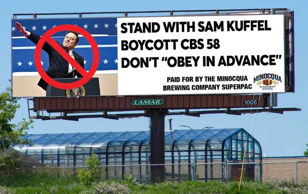 Support is certainly coming from corners Kuffel probably did not expect. The Minocqua Beer Super PAC (that’s apparently a thing) is set to put up a billboard across the street of CBS58 with an image of Musk’s Nazi salute and the words, “Stand with Sam Kuffel. Boycott CBS 58. Don’t obey in advance.”