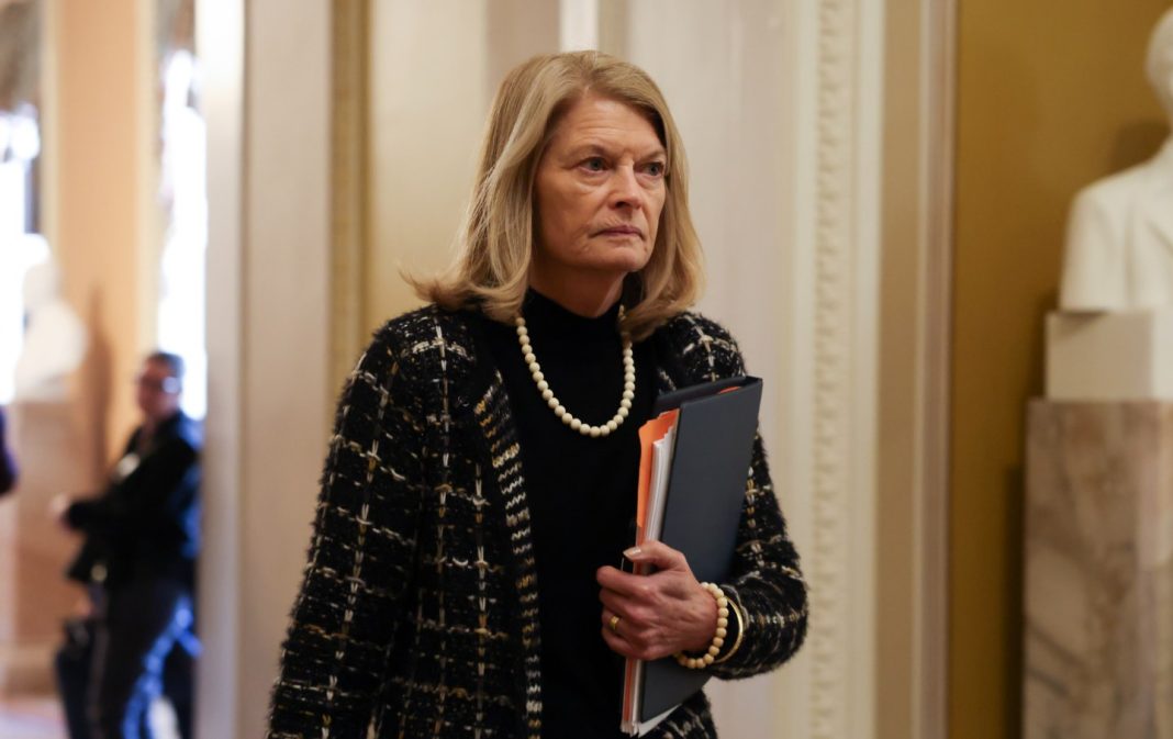 Sen. Lisa Murkowski (R-AK) heads to the Senate Chamber on January 22, 2025.