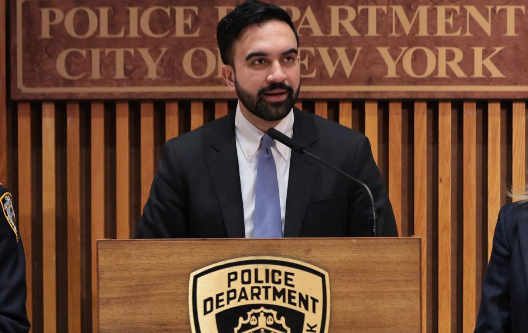 Zohran Mamdani speaks during a press conference at the New York Police Department headquarters on April 2, 2026.